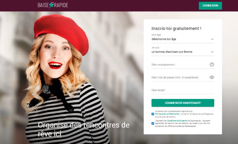 BaiseRapide figure parmi les Dating Sites en France conçus pour les hommes souhaitant profiter de Discreet dates et d’Exciting adventures, sans s’engager dans des processus compliqués. La plateforme met clairement l’accent sur la simplicité et la rapidité, afin de permettre aux membres de se connecter facilement avec des personnes partageant des attentes similaires. Grâce à une interface moderne, fluide et entièrement optimisée pour les appareils mobiles, BaiseRapide se présente comme un Dating portal efficace, où les premiers échanges peuvent débuter très rapidement après l’inscription.